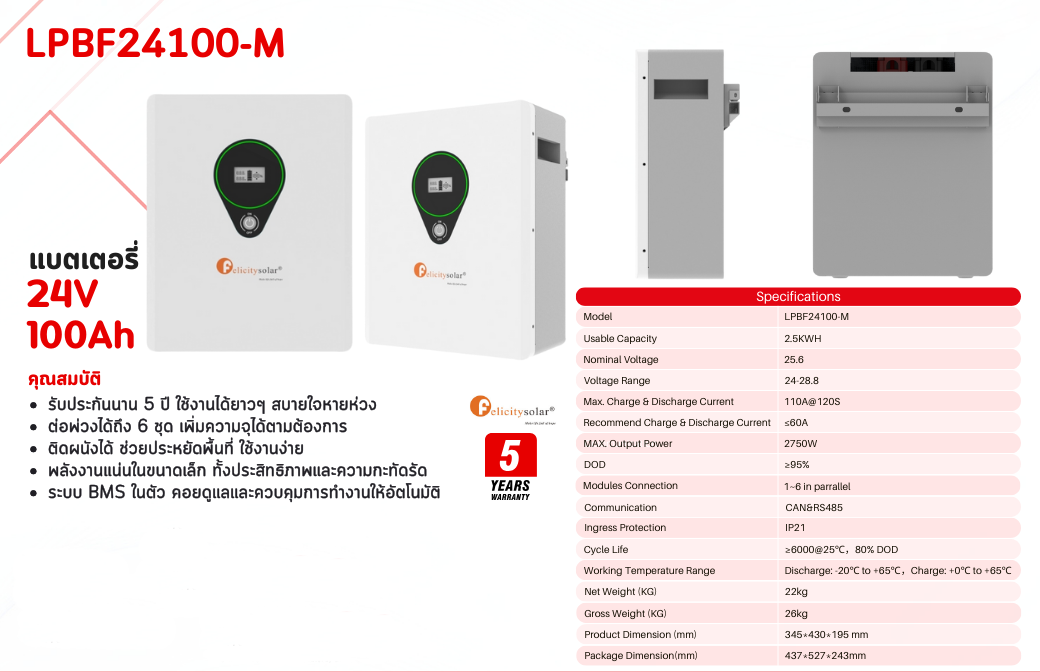 ข้อดีของ Felicitysolar LPBF24100-M 24V 100Ah
