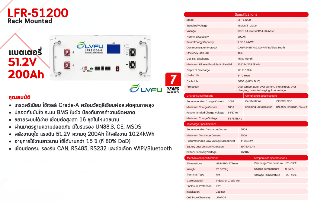 ข้อดีของ LVFU LFR-51200 51.2V 200Ah