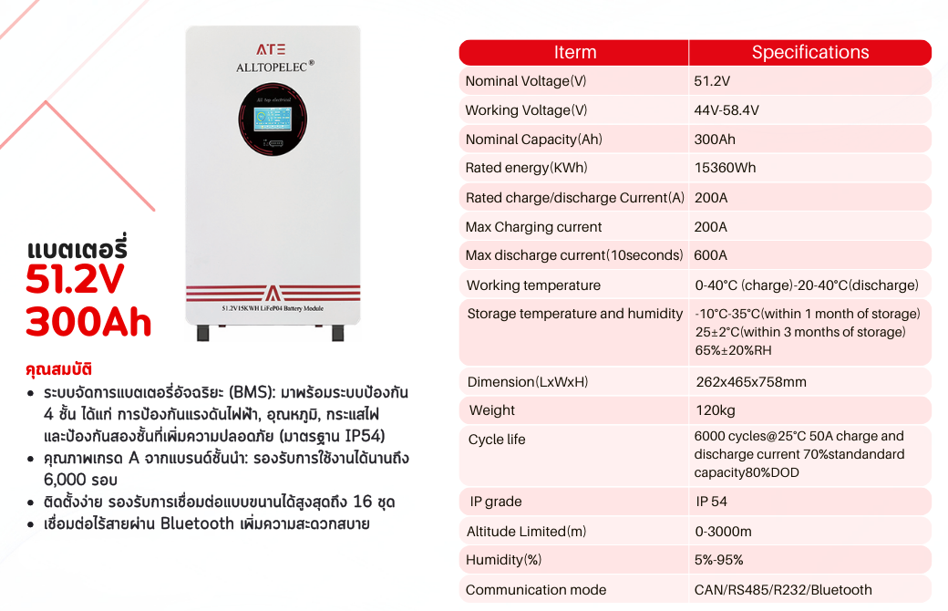 ข้อดีของ ATE ALLTOPELEC 51.2V 300Ah